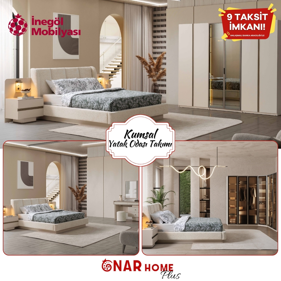 YATAK ODASI TAKIMI: Karyola, karyola başucu, 2 adet komodin, gardorop, şifonyer, şifonyer aynasından oluşmaktadır.