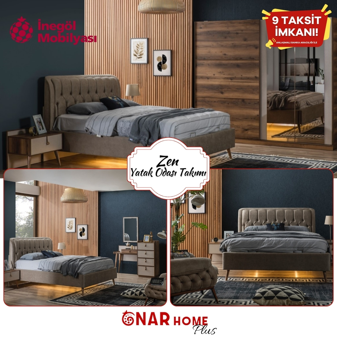 YATAK ODASI TAKIMI: Karyola, karyola başucu, 2 adet komodin, gardorop, şifonyer, şifonyer aynasından oluşmaktadır.