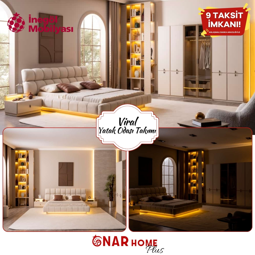 YATAK ODASI TAKIMI: Karyola, karyola başucu, 2 adet komodin, gardorop, şifonyer, şifonyer aynasından oluşmaktadır.