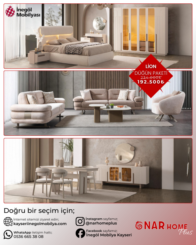 YATAK ODASI TAKIMI: Karyola, karyola başucu, 2 adet komodin, gardorop, şifonyer, şifonyer aynasından oluşmaktadır.