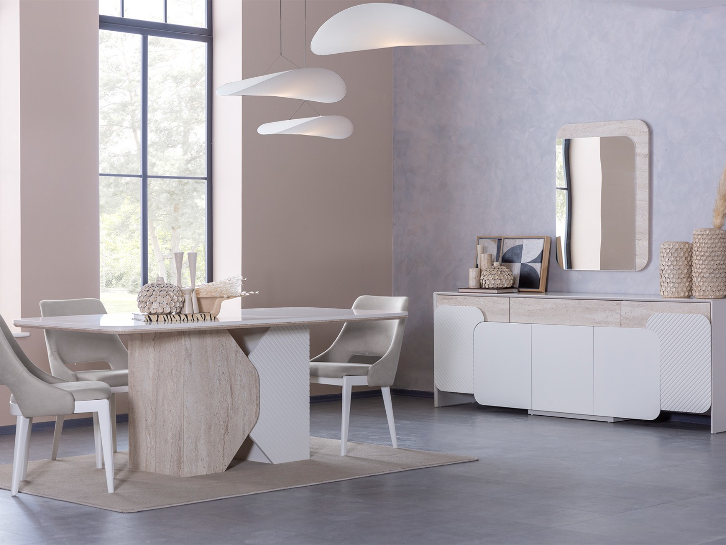 YEMEK ODASI TAKIMI: Konsol ,konsol aynası, yemek masası ve 6 adet elmas sandalyelidir.