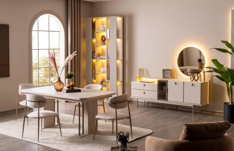 YEMEK ODASI TAKIMI: Konsol ,konsol aynası, yemek masası ve 6 adet sandalyelidir.