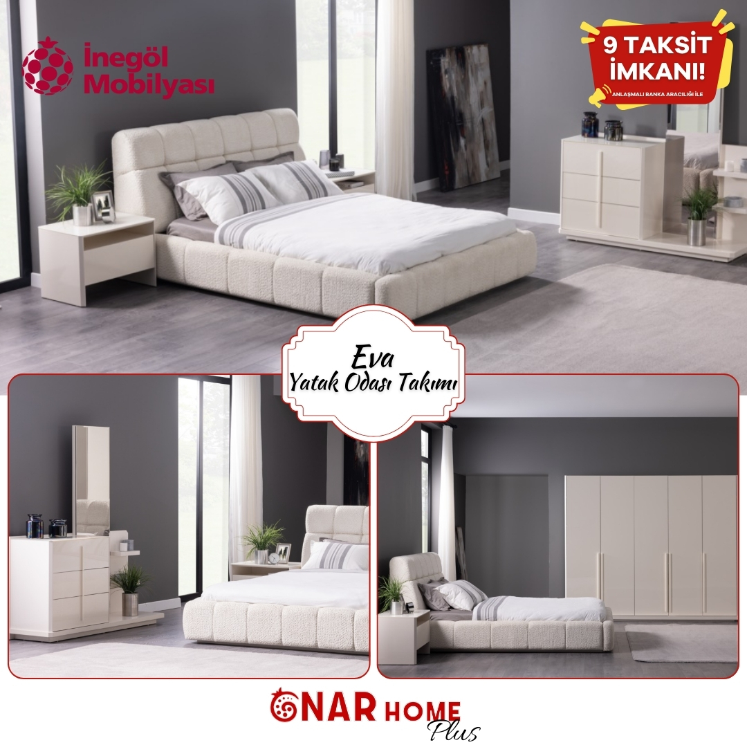 YATAK ODASI TAKIMI: Karyola, karyola başucu, 2 adet komodin, gardorop, şifonyer, şifonyer aynasından oluşmaktadır.